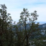With no fog, I could now see how the trail approaches the crest of the range, starting from 7 miles to the north and trending south to within less than 2 miles before turning east to climb around the head of an intervening canyon. From a clearing 3 miles north of the crest, I could even identify the road climbing to the fire lookout, despite my recently impaired vision.