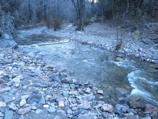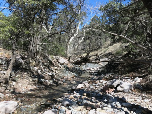 I’ve had this condition for 24 years. It began with episodes separated by years, then about a decade ago increased to the six-month intervals. Apparently now it’s accelerated to a third level. More than anything, I was angry. At 10 am, the sky was clear and the temperature was already approaching 70 – a welcome change from the freezing temps we’d had at home for over a month. The sycamores made this a beautiful canyon, and I loved the sound of the creek. I was determined not to let the pain stop me.