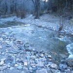 That young backpacker became the hero of my day, setting out in January, embracing multiple crossings of the third snowmelt creek, which would be four times as big as the first. I wished I could do that, and gave serious thought to the waterproof, insulated socks that are now available. Surely my foot could tolerate short episodes in sandals with good arch support. Sure, it would mean a lot slower hikes, with all the changes of footwear and drying out of gear, but I might get over my fear of cold water.