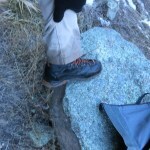 But my problems weren’t over. Starting up the rocky trail, I simultaneously developed cramps in my left foot, right quad, and left hamstring, and it was all I could do to keep from falling over. After the cramps subsided a little, I dug a packet of electrolyte supplement out of my pack and mixed it with the last of my drinking water.