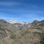On the evening before my first hike, driving into the town that lies at the foot of the north wall of the mountains, I could see that the snowline was well below 7,000′ – on the shaded north side of the range. One of the hikes I was most interested in approached 10,000′ on that north slope.