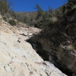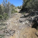Pain stabbing me with every step, I passed through the gate and walked up the road, which the trail guide said had been washed out by floods after the 2011 wildfire. And sure enough, a little over a quarter mile in, I came to the first of the washouts, with a superfluous “Road Closed” sign, and after that, the damage became more and more apocalyptic.