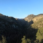 The sun was going down when I crossed back into the first canyon, and could see how much farther I had to descend to the creek crossing and the campground. At this point it was obvious that this trail had been built primarily on slopes where the deepest snow would collect. I had really put my snow hiking ability to the test today, and would be likely to reserve hikes like this for snow-free conditions.