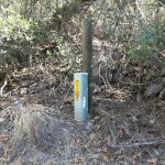 At each washout a black insulated phone cable would emerge from underground, and I found eight to ten “Caution – Buried Cable” posts beside the roadbed. Apparently someone had laid a telephone cable up here, at great cost! The follies of mankind…