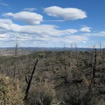 This is the kind of trail I normally find boring – a very gradual ascent north through grassy meadows and open woodland to a low saddle. From the saddle, it descends into the canyon of the middle fork of the river, which is heavily forested, primarily with tall ponderosa pine. But just before the saddle is a junction where the “rim” trail takes off to the west.