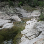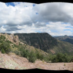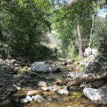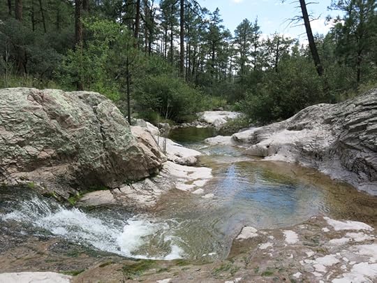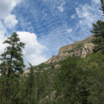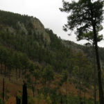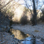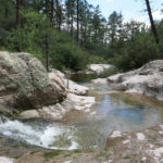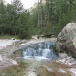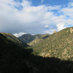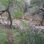 There was really only one that didn’t add a lot of driving. I could continue up the mesa and re-do the hike I’d done only two weeks earlier, that had ended at a swimming hole. I hated to repeat a hike I’d already done so recently. And it would involve a creek crossing that had surely been devastated by flooding, but at least the creek would now be low enough to cross.