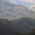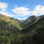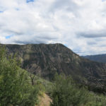 This is the hike that drops into the first canyon, crosses the creek, climbs 1,400′ on switchbacks to cross a rolling plateau, and finally drops 1,200′ into the second canyon. And although I think of it as my favorite nearby hike, it’s one of the hardest on my list, because of the several very steep, rocky sections that are especially brutal now with my reduced lung capacity.