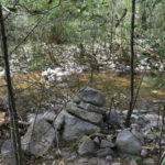 Today, I discovered the horsemen had hacked their way to that same place, then given up. So I used my bushwhacking skills to trace the old creek trail farther up, helped by occasional cairns and pink ribbons.
