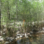 My first stop was at the hidden cache of our shade structure, which remained untouched and sheltered. That cheered me up, along with the health of the riparian vegetation.