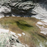 After my first dip in the bathtub pool, I noticed there were fish in there. When spooked, they would spill over the flat stretch into the downstream pool, then shimmy their way back up.