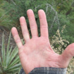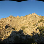I’ve done this climb at least a dozen times since the early 90s – both solo and with friends, including a couple who haven’t been in very good shape. The last time I’d been up there was in April 2016, by myself. I’ve always considered it a dangerous climb – very steep, requiring many short bouldering moves and traverses of loose rock at the angle of repose, including sizable boulders that appear stable but tip or slide when you put weight on them. And plenty of yucca blades or cactus spines to impale yourself on if you make a single mistake.