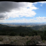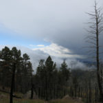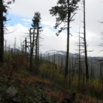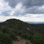 The peak I reached afterward had some great views of storms developing over the region, but it was only a temporary stop. I had my eye on two little peaks higher up that blocked my way to the long “hogback” in the middle of the ridge, which bore an attractive fringe of tall ponderosas.