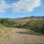 I reached the turnoff for the trailhead, and discovered that the little creek was flowing vigorously out of the foothills and past the highway, something I’d never seen before. And I quickly found that the long gravel approach road had been washed out by debris flows at many places – something that should’ve tipped me off even before reaching the trailhead.