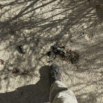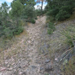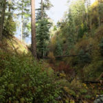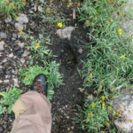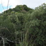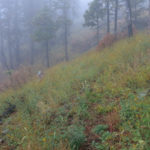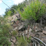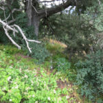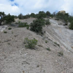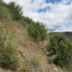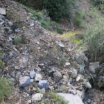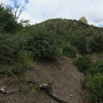 The horsemen had gone crazy on the trail down into the second canyon. This trail had been clear of brush to begin with, so they’d widened it into a 10′-15′ clear-cut corridor. But there was nothing they could do about the loose rocks and 30% grade. Despite all the effort they’re putting into it, it appears to me that the only people using this trail are the equestrian trail crew and me.