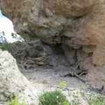 Afterwards, continuing toward the first peak of the ridge, I noticed what seemed to be a cave on the up side of the outcrop. Sure enough, some hiker in the distant past had stopped there, accumulating a pile of firewood that seemed excessive, considering no one else had reached this spot in ages.