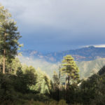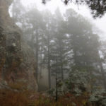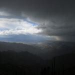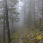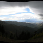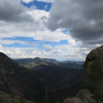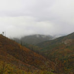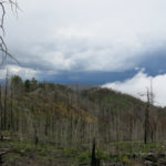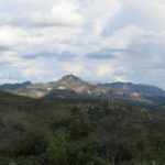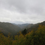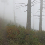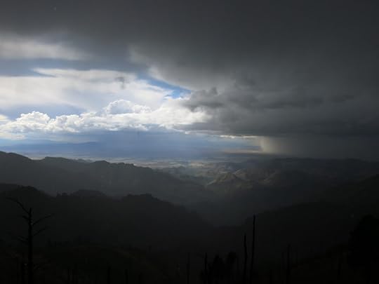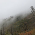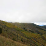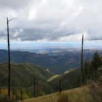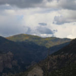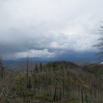 The day had started clear and cool, but the forecast was for partly cloudy skies and a chance of rain in town, which meant I had to dress for rain in the mountains. Dark clouds were massing over them as I drove north to the next trailhead.