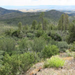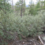 I somehow managed to avoid gullies, but near the bottom, I found myself in open forest blocked by a maze of scrub oak, mountain mahogany, and manzanita that I just had to push through for a long distance, trying to hang onto my sense of direction to avoid missing the plateau.