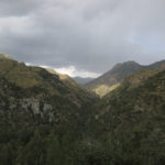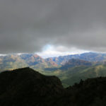 Clouds were still moving all over the landscape, alternately threatening rain or highlighting slopes and rock formations, as I returned across the plateau. And the flies, which had deserted me up on the high ridge, began to swarm me again.