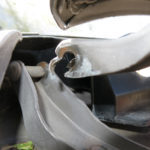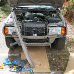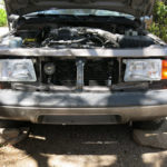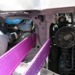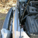The new plastic grille was one of the cheapest parts – $30. After I screwed it on, I realized the hood needed some more work – the panel gaps at the sides were annoyingly big. I used a ratchet strap to bend it down a little more. Then I really thought I was done.