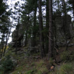 As I continued east across the plateau, I had my eye on the series of rock outcrops and peaks that punctuated that ridge. For the past two years, on every hike along this trail, I’d dreamed of bushwhacking up that ridge. It seemed to offer views into the deep, rugged canyons on both sides, but it clearly had very steep sides, which would need to be traversed to bypass sheer cliffs, and some of those slopes included dangerous talus.