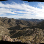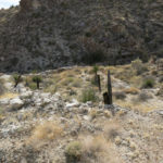 I was shocked to see how dry everything is – perhaps drier than I’ve ever seen before. The creosote bushes on the alluvial fan have dropped almost all their leaves, with remaining leaves brown and dead, except for a few shallow drainages where highly localized storms caused a little runoff this year. I think we all hoped this year’s wet monsoon would bring rain to these mountains, but that simply didn’t pan out.