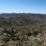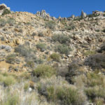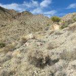 Exploring beyond the ledge where the stamp mill was located and the mules corralled, I discovered a well-built mule trail into a side canyon that I couldn’t remember. I followed it a few hundred feet higher in elevation until it was blocked by a giant cholla next to a cliff a dozen feet high. I vowed to return when I had more time, because this trail seemed like a practical route to the crest, not much farther above.