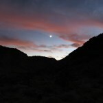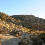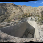 I made it about halfway and realized I didn’t have enough time to go farther. But everything up there – the elegant pines, the house-sized, white granite boulders, the view across the open desert – is beautiful. And in the brief dusk after sunset, I climbed back down to the streambed and made it most of the way up to the sheep drinker at its head, maintained by the Bighorn Society.