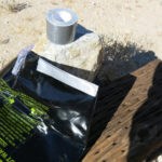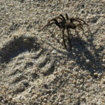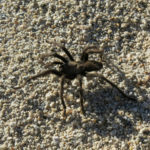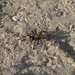 Back at base camp, I found a big tarantula nonchalantly strolling past my vehicle – it looked identical to the one I’d passed two days earlier farther up the gulch. My back was still hurting, as was my heel – probably a delayed reaction from the back down the sciatic nerve – so I took a pain pill. I was filthy and overdue for a shower, so I made further attempts to stop the leaking seam – I had a binder clip I use for bags of chips, and rolled up the taped seam, finishing with the clip, which slowed the leak to a slow drip.