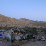 Our campsite is elevated on a ledge above the wash, with a 180 degree view across the gulch and interior basin, ringed at the horizon by jagged ridges. Under the star-strewn sky, scanning that dark jagged profile, I was again reminded of how this landscape, which looks so bleak and monotonous to the novice, is for us filled with hidden magic – countless special places we’ve explored and shared, hidden to view until you’re upon them. Just gazing across this landscape triggers memories that span decades, flooding my head and heart. I thought about the desert journals lost in my house fire – all those details that might never return to mind.