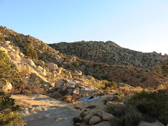 I’d finished my water halfway there and was just beginning to get a little dehydration headache when I finally dropped from the bajada into the wash below camp.