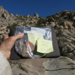 What a place, and what a perspective! The wind was fading to a pleasant breeze, a majestic pyramidal peak rose a couple hundred feet above the head of the canyon, and I had views into the Lost World – the huge southeastern basin – as well as over Blockhead, the granite monolith on the south wall of our own interior basin, which we stare at from camp.
