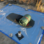 So I tried the only remaining trick – I got up once again in the dark, and folded my plastic tarp over the sleeping bag, so that the open side was downwind. I had no way of holding it closed, but I had a couple of bungee cords that I used to anchor the side and corner of the tarp to my pack.