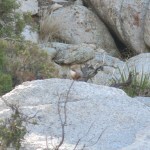 As I scanned the landscape around me, I noticed a flash of white farther down the ridge – it was a white-tail deer bounding from rock to rock, mostly hidden behind tall scrub oak. I was really surprised to see it atop this steep, rocky ridge – not typical deer habitat.