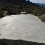 A mature bighorn ram had fallen in the tank, which is 12-15′ deep, with no way up the nearly sheer walls. This tank is obviously a trap for wildlife, but the only way I could imagine an adult bighorn falling in, is if it was in flight, perhaps from a lion, bounding up the slope from below, and for some reason unfamiliar with this spot and its hazard.
