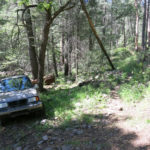 I recalled the day a couple of years ago when I’d met a young couple from California who were hoping to view a property at the end of this road, high in the forest. The road had been barely drivable for my vehicle then, with 4wd and 9″ ground clearance, but they’d made their way up to the midsection in a Prius, finally giving up and hiking the rest of the way. I wondered who owned that property now, and what they would do with the road, if anything. It’s simply a misconceived road in the wrong place.