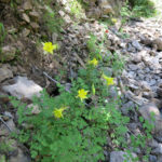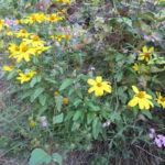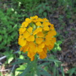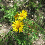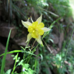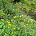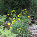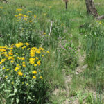 Somehow, leaving the cabin, I got a second wind. I couldn’t climb any faster, but I’d trained myself to walk at half my usual pace, which enabled me to go farther without stopping to rest. And the saddle at the crest trail junction, with its long view toward Mexico, was carpeted with yellow flowers. A young couple was coming back up the crest trail – like most people, they’d done the long, slow drive to the alpine campground several miles north, so they could do the easy crest hike, which involves little elevation change.