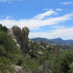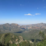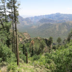 Despite it being a holiday weekend and this being a popular getaway from Tucson and Phoenix, I didn’t see anyone else after that. The 2,000′ climb from oak scrub to mixed conifer forest is very steep – when I started hiking here 3 years ago I considered it one of my most daunting climbs – so with my current reduced lung capacity I approached it with a stiff upper lip. But it actually wasn’t too bad. I realized I was in exactly the same position I’d been in 3 years ago – having to stop often to catch my breath, I’d trained myself to climb more slowly so I didn’t have to stop as often. I covered the 3 miles to the park in 2 hours, which didn’t seem bad. And as usual, I was grateful for how much better maintained the trails are here than back at home. Fighting through monsoon overgrowth of shrubs and annuals has become a real chore this year, but there wasn’t nearly as much of it in these mountains.