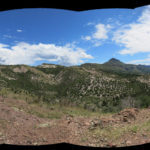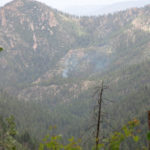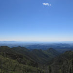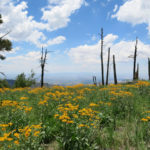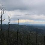 This year’s fire had stopped its southward advance at the peak, 5-1/2 miles north of the trailhead, and its scar couldn’t even be seen until you reached the top. But the 2013 wildfire had turned most of the crest into a treeless moonscape, colonized in the intervening years by shrubs and annuals. After this year’s wet monsoon, I saw plenty of flowers and birds in that area.