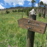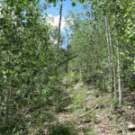 It’s not much of a peak – the original south side forest burned by the 2011 wildfire has been replaced by aspen thickets, so there’s barely a view. But the remaining forest makes for a nice shady spot to lie in the grass, and the minimal view of distant peaks peeking above the young aspens reminds you that you’re high in the sky.