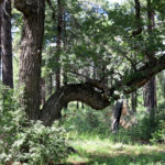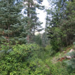 Finally, again peering down through gaps in the forest and scrub, you spot more level ground below – the shady pine and fir forest above the elevated floodplain of the second creek. This is a huge relief!