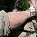 Finally I left the ridge and climbed to the pine park, where the flies swarmed me with a vengeance. And from there forwards, the trail really felt unfamiliar. The “traverse” back to the pass and the open country beyond the mountains felt even more endless than usual, and the rock-lined erosional gullies were harder to descend than they’d been to ascend. With my compromised foot and hip, I had to take it slowly and carefully.