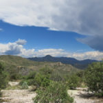 A variety of birds were passing through, there was a nice breeze, and monsoon clouds were forming all around, occasionally drifting over the sun and providing even more cooling shade. My clothes were so drenched with sweat from the hot climb that they wouldn’t dry out until long after the hike, but I’d learned to ignore that minor discomfort, whenever my body had a chance to temporarily cool off.