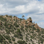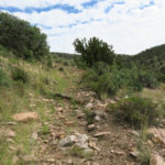 Like other trails on the west side of our wilderness, this one starts by descending into a canyon, traversing down its west wall for about a mile up canyon. These canyons have steeper walls than most – sheer cliffs in some places – and the mostly exposed traverse through pinyon, juniper, and scrub oak forms the first chapter of the hike. As you traverse up canyon and descend toward the creek, more of the view ahead is revealed.