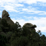 At the top of the switchbacks, the trail cuts east into a shallow hanging valley lined with evocative rock formations. In pinyon-juniper-oak forest again, you work your way up to the head of this hidden valley, where finally you emerge onto a sort sort of saddle with a small rocky peak looming above.