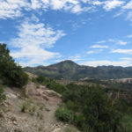 The trail skirts this ledge and begins the final descent into the second canyon, which you dread, knowing you’ll have to climb up it on the way back. This part of the trail consists of loose rock with an average grade of 30%, zigzagging back and forth through a mixture of scrub oak and ponderosa along which you judge your progress by peeking through gaps in the forest at the wall of Lookout Mountain across the canyon.