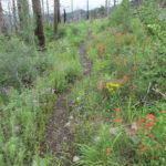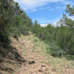 This is the longest of my day hikes – 18-1/2 miles out and back, with 4,400′ of accumulated elevation gain. The only reason I can achieve that much mileage in a day is because the trail’s in better condition than any others – most of it follows the Continental Divide Trail, which is completely restored annually, as opposed to our national forest trails, a few of which are only partially cleared at much longer intervals, with the rest completely abandoned.