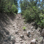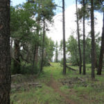 While sampling the motel’s breakfast the next morning, I idly studied the local newspaper, discovering that the Forest Service had scheduled a volunteer work session on that very trail for both Saturday and Sunday. Since I’d seen no sign of work or workers, they’d apparently had to cancel due to weather.