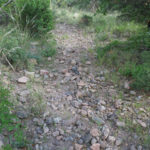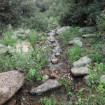 As usual, the rain only lasted a half hour, but now, runoff was pouring down the entire slope, and the entire trail was functioning as a creek. As mentioned earlier, the sound of a flood is exaggerated and carries a long distance, so I was accompanied by that freight train roar most of the way down.
