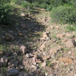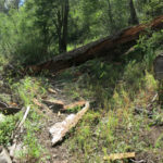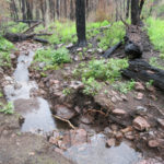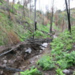 Beyond the saddle was a bowl that had been turned into a chaos of fallen logs by the 2013 fire, and these logs had clearly provided fuel for this year’s fire. Now that those logs had burned, along with the new growth of shrubs, this year’s wet monsoon was quickly eroding the bare soil and washing it downstream.
