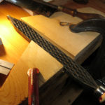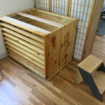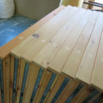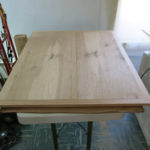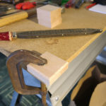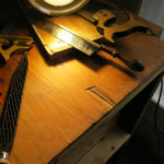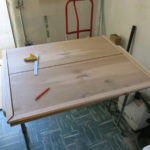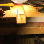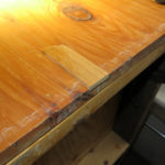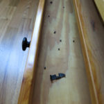 Finally, at the end of March, I was ready to start fixing up the flat file. But by now I’d completely forgotten where I put that missing wood chip. I looked everywhere but couldn’t find it – I would simply have to fabricate a new piece and glue it in. But how to match the original knotty pine? Knotty pine is no longer available, especially here.